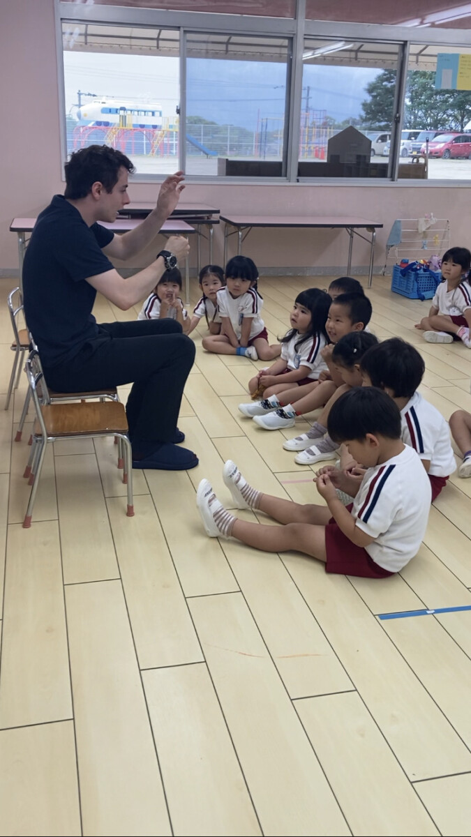 みんな大好きな英語の先生。お部屋の出入り口まで一緒に歩いていってお見送りをしていましたよ👋