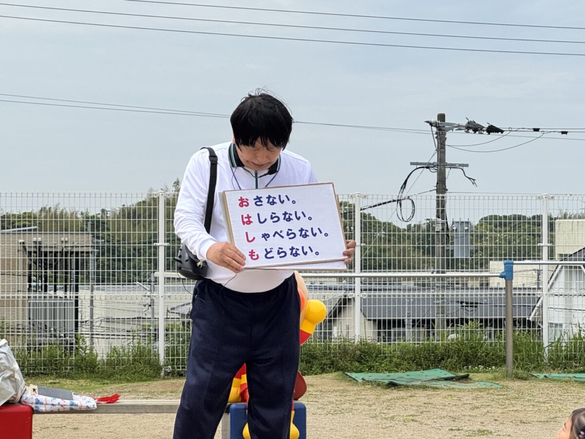 理事長先生から避難訓練のお約束「おはしもち」の